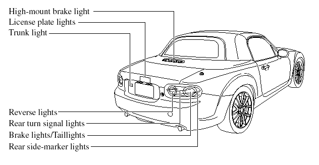 Rear turn signal lights, Reverse lights, Brake lights/Taillights, Rear side marker lights