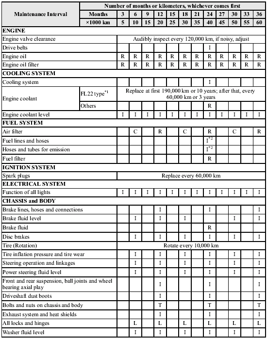 *1 Use FL22 type coolant in vehicles with the inscription “FL22” on the radiator cap itself or the surrounding area. Use FL22 when replacing the coolant.